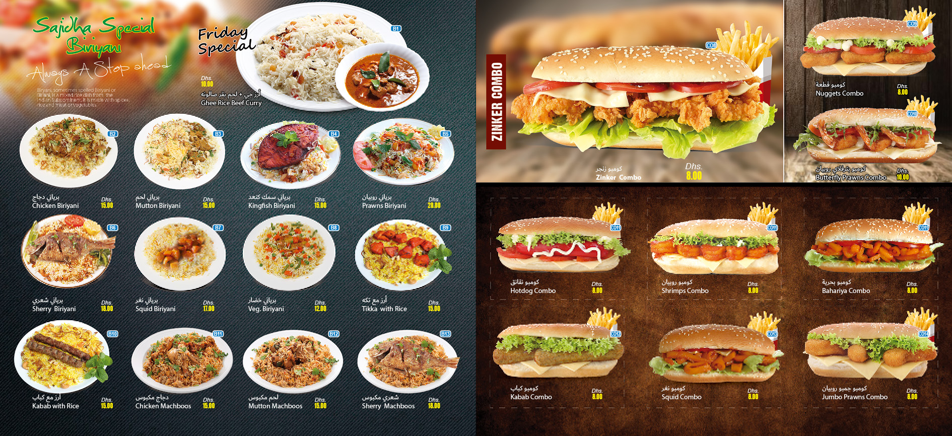Sajidha Restaurant & Cafeteria is the result of our attempt to create the best food from the best ingredients served to customers. With 28 years of experience in the finest restaurants, our chefs are excited to present their delicacies to all our guests. Our caring and committed staff will ensure you have a fantastic experience with us. We provide our customers with premium quality food through an ultra-modern and hygienic production facility following 100% halal practices.